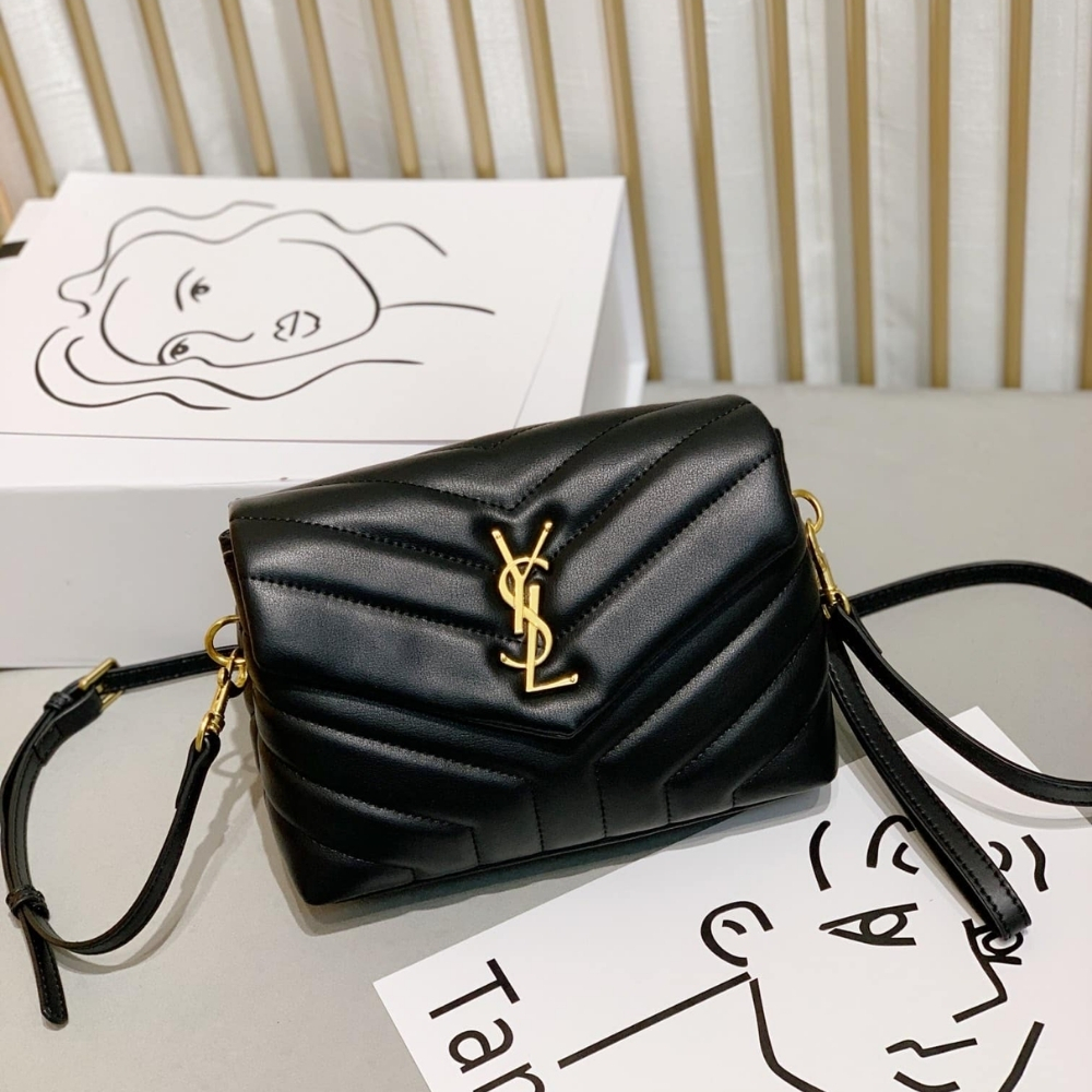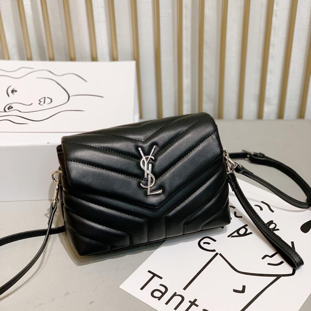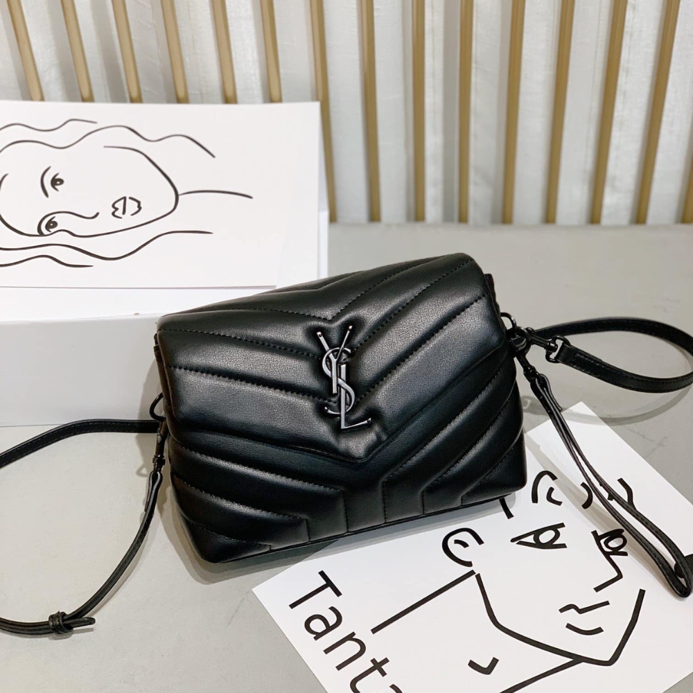 Saint Laurent Loulou Toy Strap Bag In Quilted Y Black With Black Hardware 20Cm