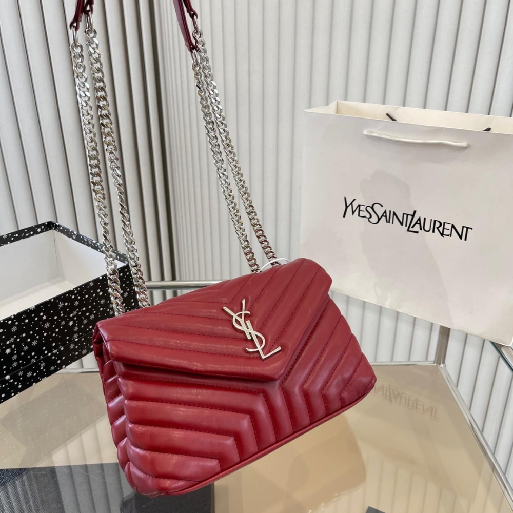 Saint Laurent Loulou Small Chain Bag In Quilted Y Wine Red 25Cm