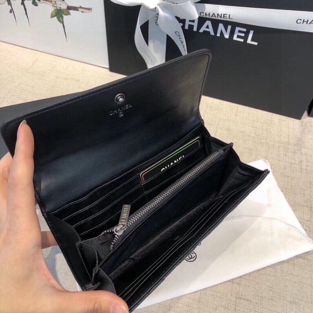 Chanel Boy Flap Long Wallet Ruthentium Hardware Black