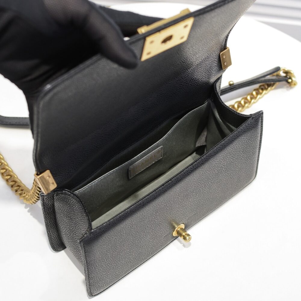 Chanel Boy Medium Handbag Grained And Gold Tone Metal Black 25Cm