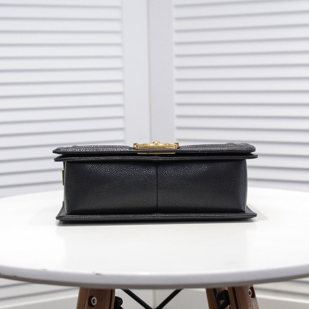 Chanel Boy Medium Handbags Grained & Gold-Tone Metal Black / 25 cm / 9.8 inches