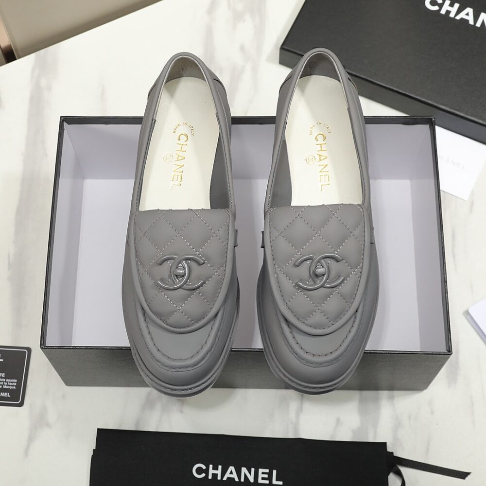 Chanel CC Nib Turnlock Moccasins Flat Loafers Grey