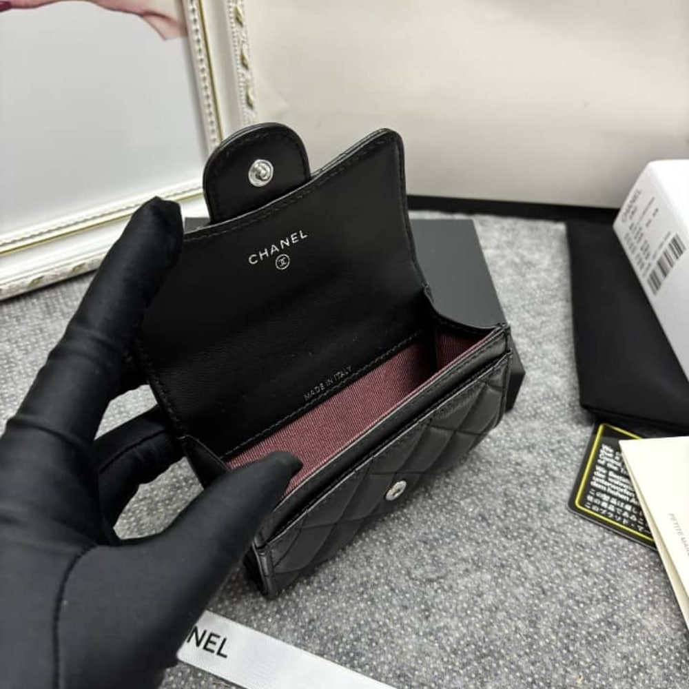 The Chanel Classic Quilted Card Holder in black with silver accents is the epitome of understated elegance, elevating even the smallest detail of your style. Sleek and iconic, it carries the timeless aura of Chanel prestige with every refined line.