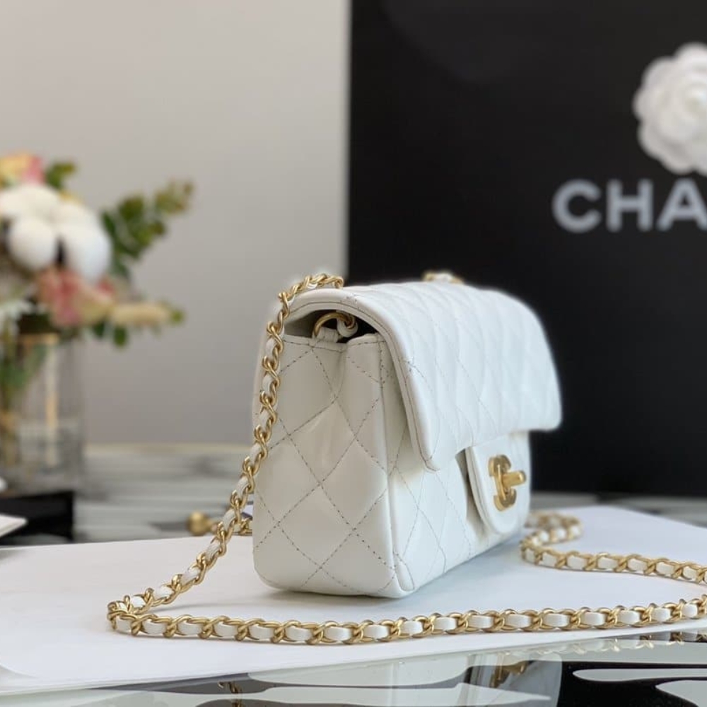 Chanel Quilted Mini CC Pearl Crush Rectangular Flap White
