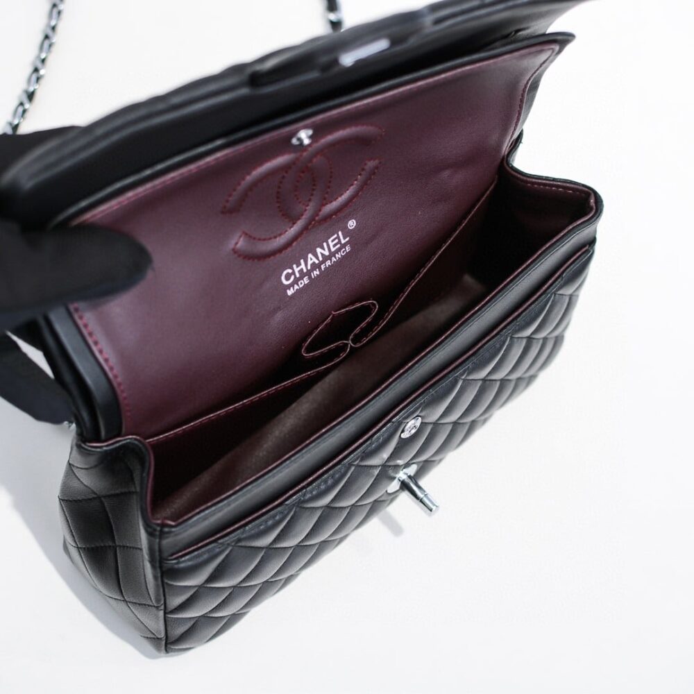 Chanel Small Classic Flap Bag Black Leather With Silver Hardware