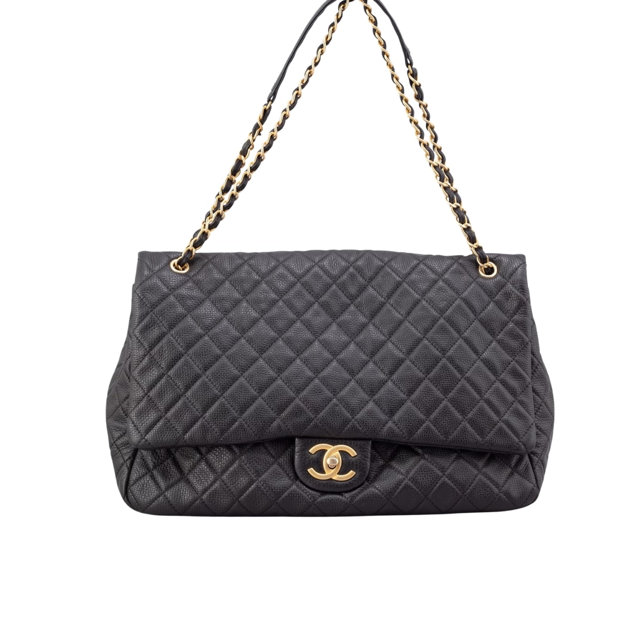 Chanel XXL Airline Classic Travel Flap Bag Caviar Leather Black Gold Hardware