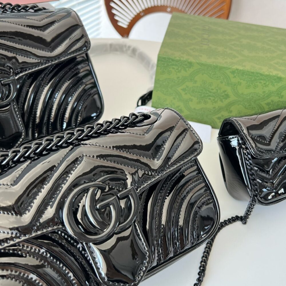 Gucci GG Marmont Patent Super Mini Bag Black