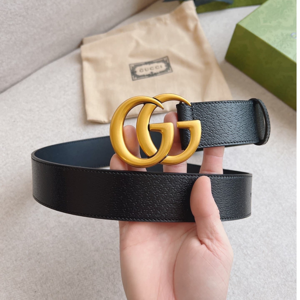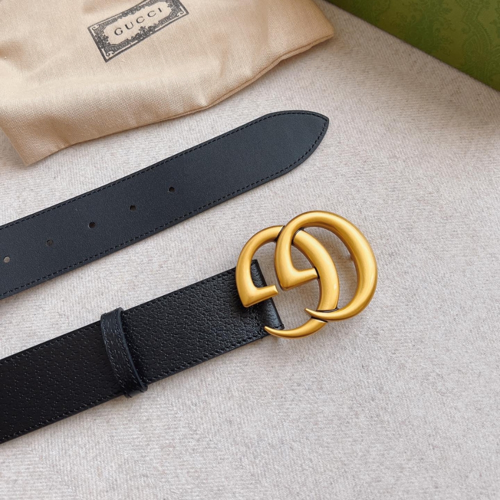 Gucci GG Marmont Wide Belt Black Gold Logo