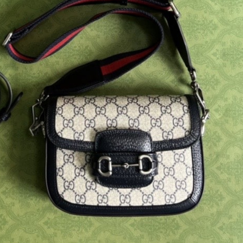 Gucci Horsebit 1955 Mini Bag Beige And White GG Supreme