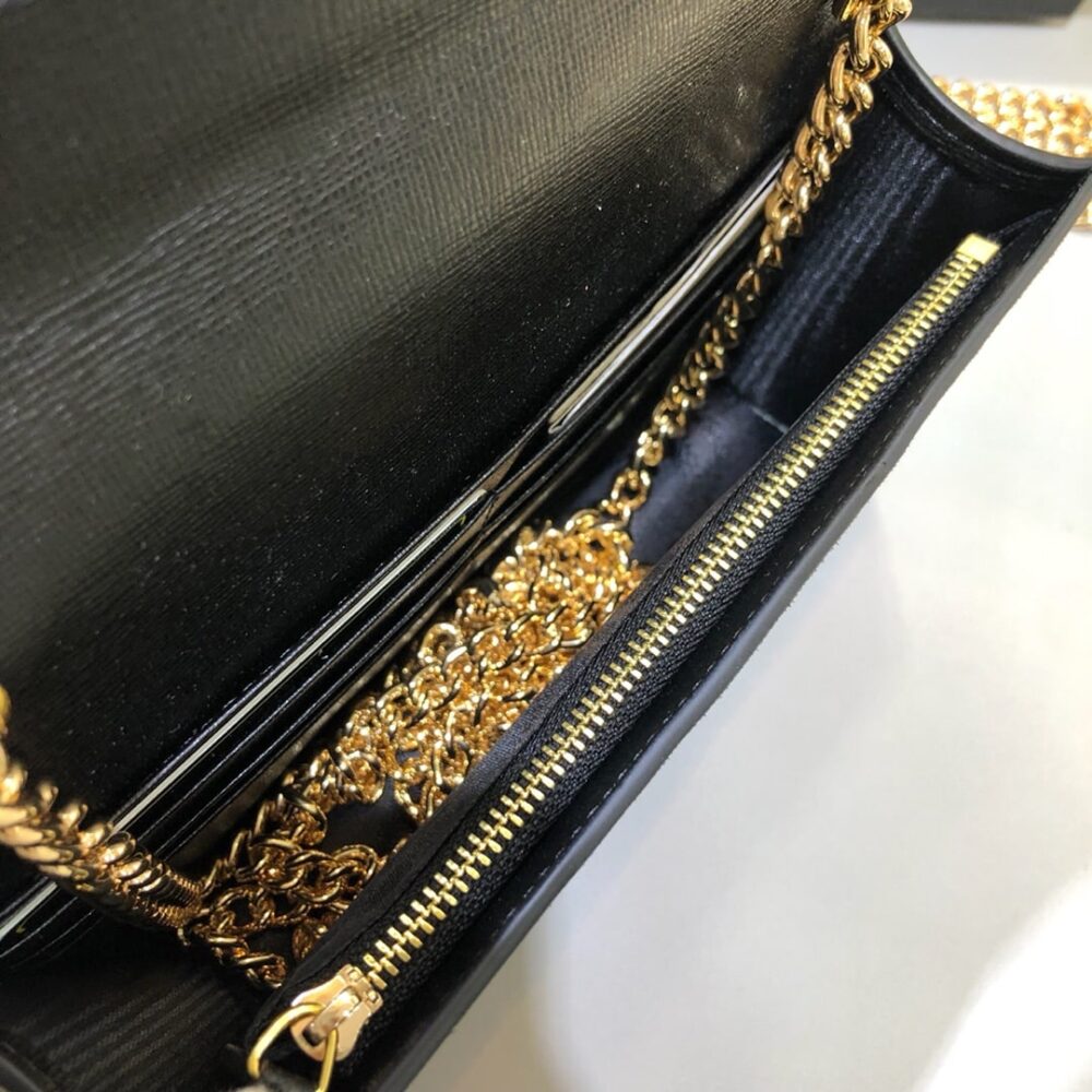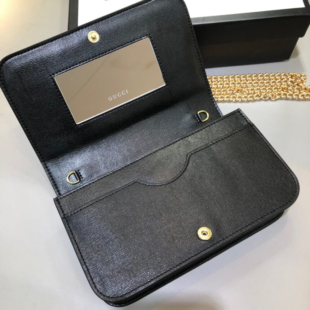 Gucci’s 1955 Wallet is defined by a gleaming gold-tone horsebit – one of the House’s signature motifs. The structured bag is easily organised with credit card slots and compartments. Style it crossbody or remove the chain strap to carry it in the hand.