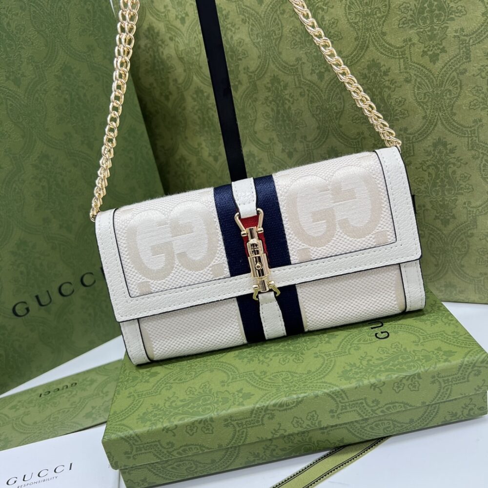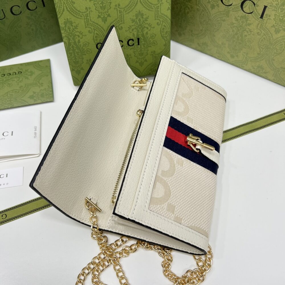 Gucci Jackie 1961 Chain Wallet Beige And Ebony GG 652681 HUHHG 8565 / 19 cm / 7.5 inches