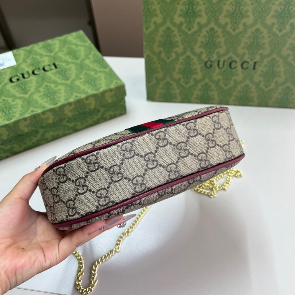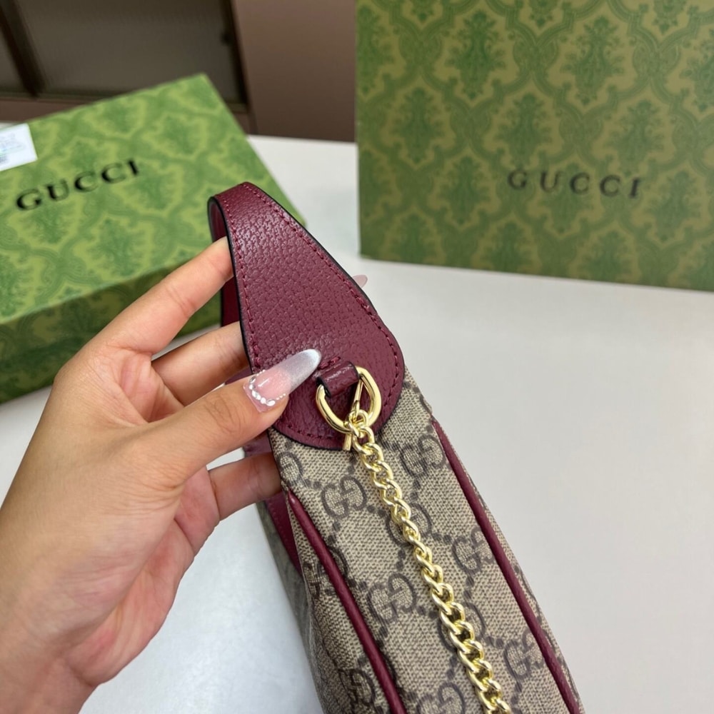 Gucci Ophidia Small Shoulder Bag Beige And Dark Red GG Fabric
