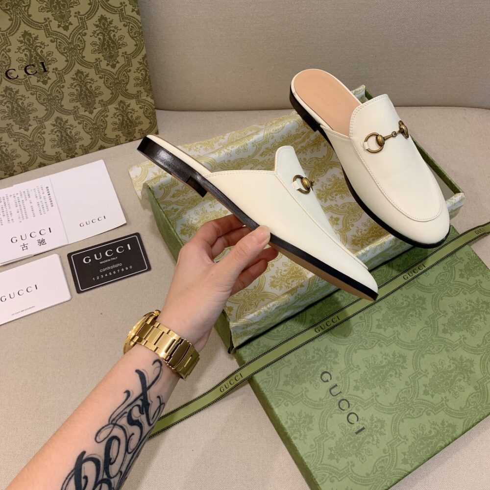 The Gucci Princetown Slipper in white is a symbol of effortless sophistication, blending iconic design with timeless elegance. Its sleek silhouette and signature detail embody refined luxury, making it a must-have statement piece for those who appreciate prestige and style.