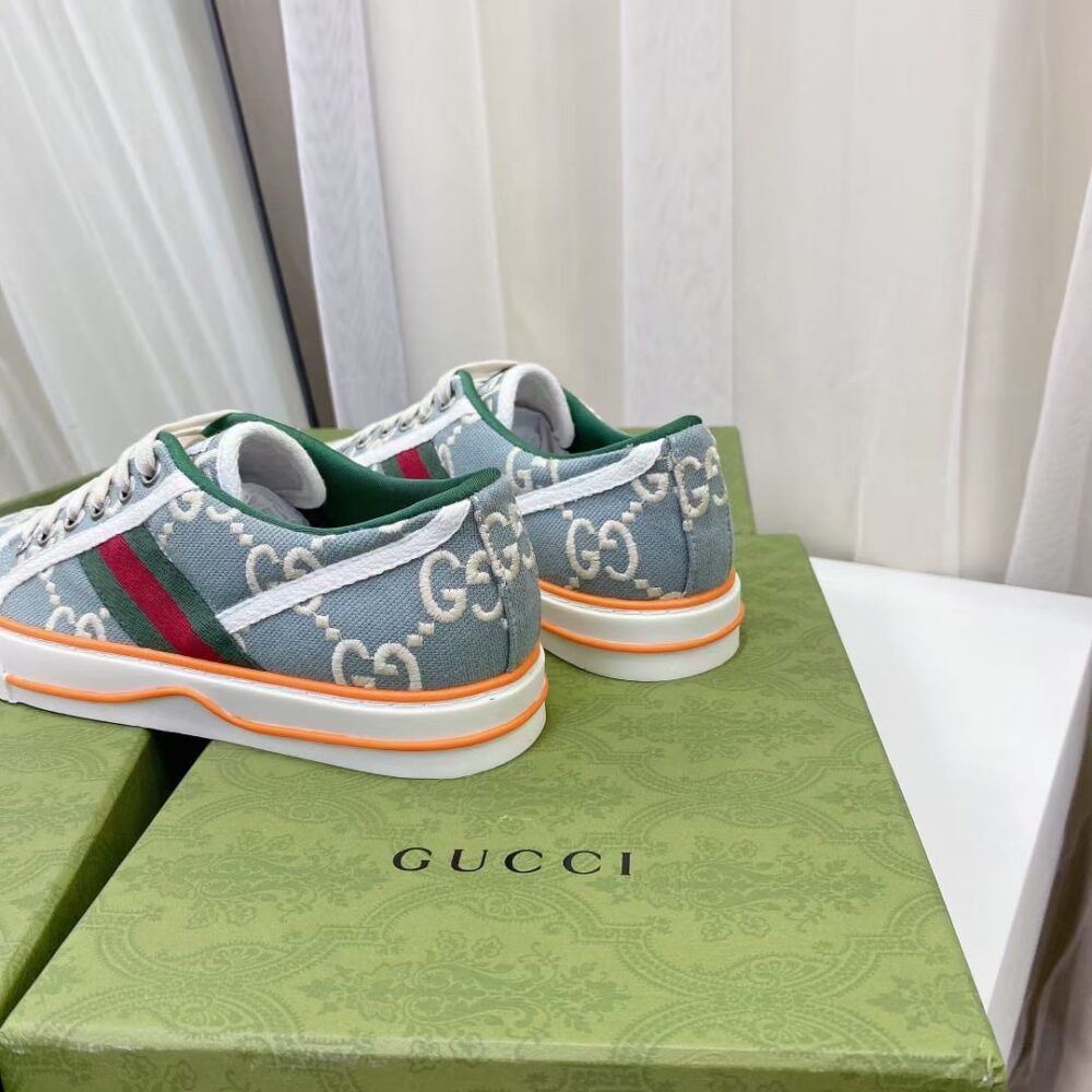 The Gucci Women’s Tennis 1977 Sneaker Light Blue pairs heritage elegance with fresh, vibrant tones, creating an instantly iconic silhouette. Blending refined design lines with all-day comfort, it transforms casual wear into a bold expression of prestige and luxury style.