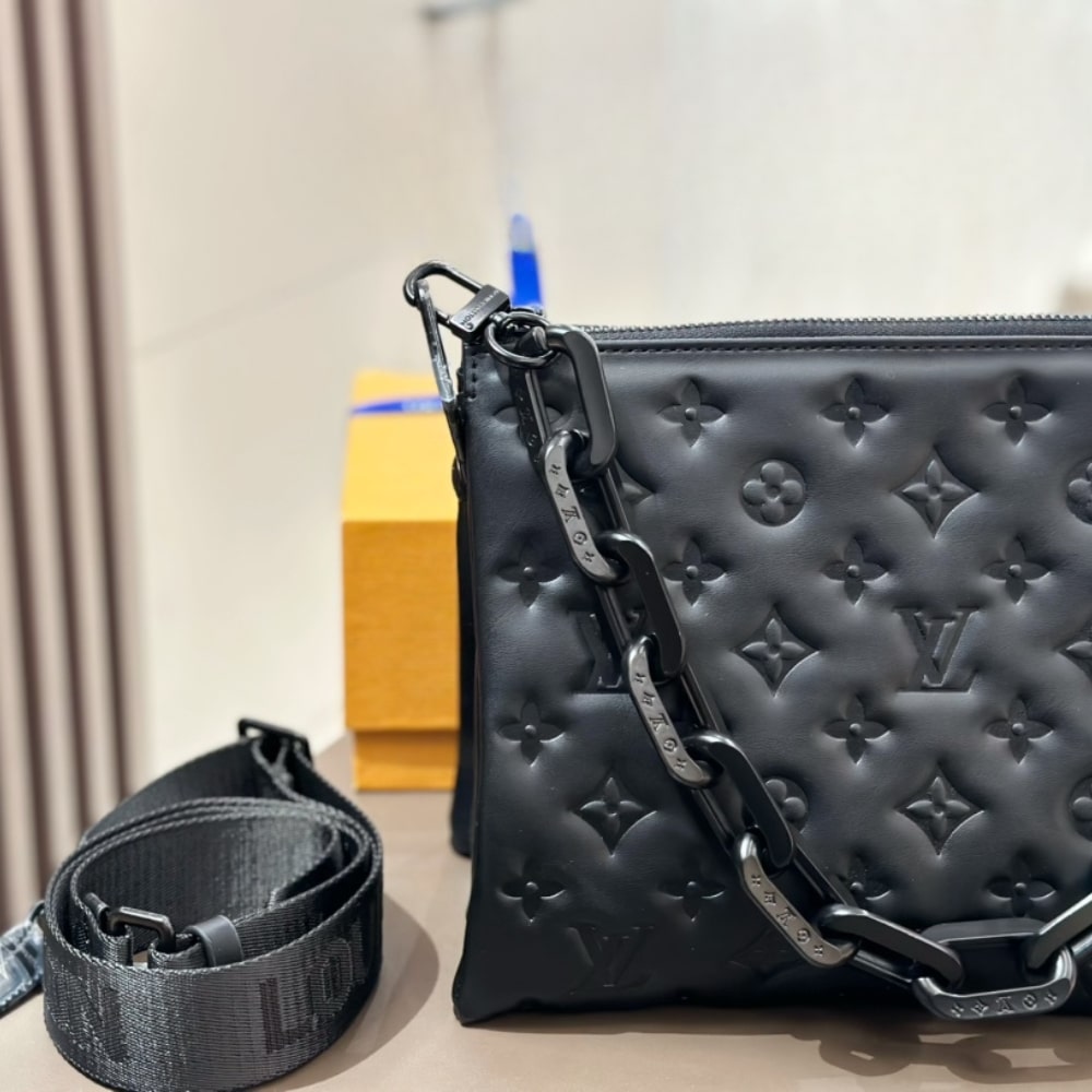The Black Out collection presents this monochromatic edition of the Coussin PM, crafted from smooth matte leather embossed with Monogram motifs. It is elevated with tonal hardware, including a removable chunky LV chain for an additional carry option. The versatile design is fitted with a secure zip closure and offers plenty of room to store everyday essentials.