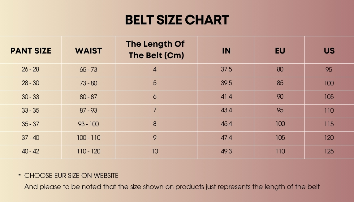 To ensure you choose the correct belt size, we recommend referring to our size guide.