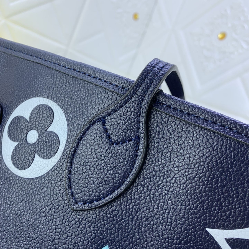 The Neverfull MM tote bag is crafted from Monogram Empreinte leather. This practical bag can easily fit a 13-inch laptop. The side laces allow the bag to be carried cinched or open for easy access to what’s inside. The long shoulder straps enable comfortable carry.