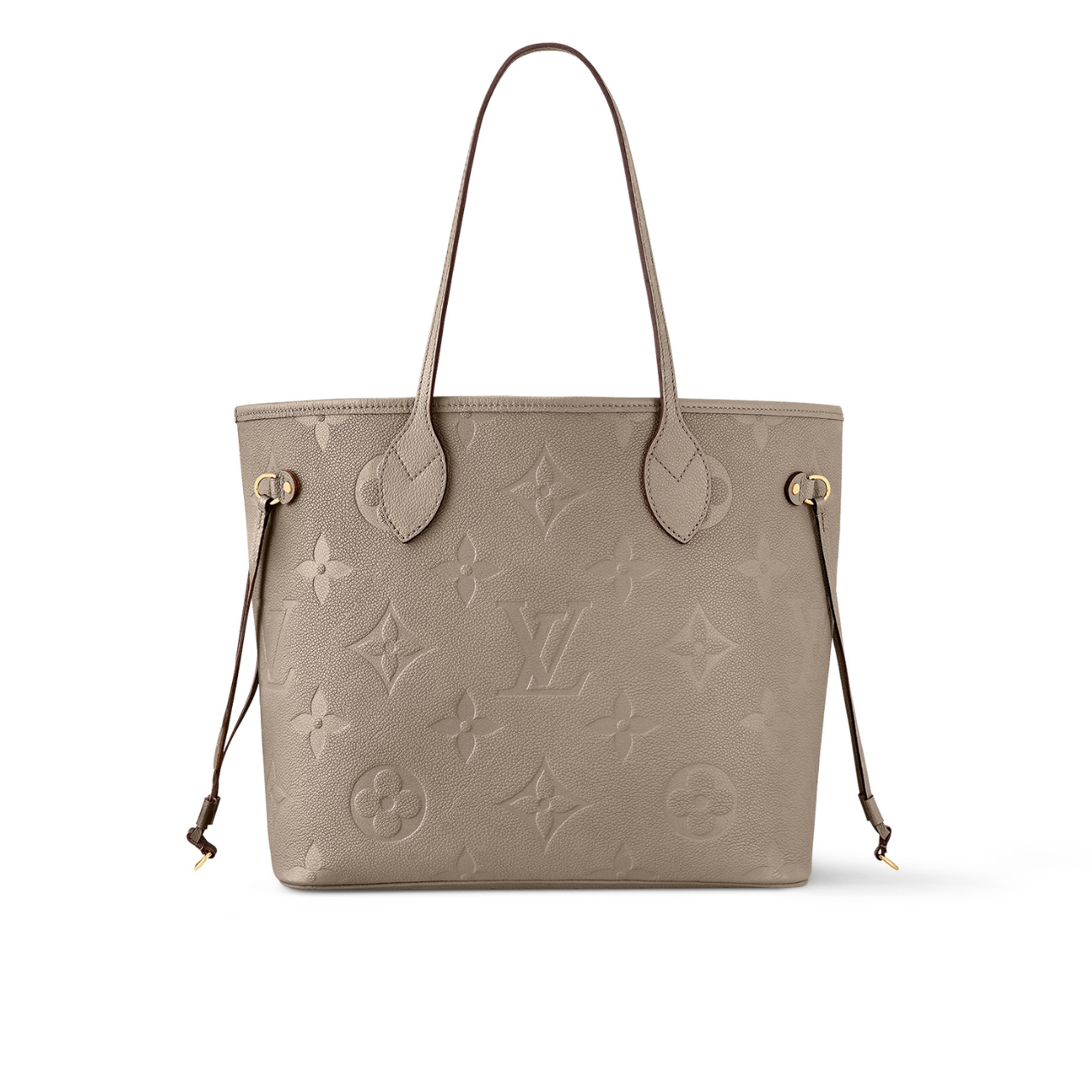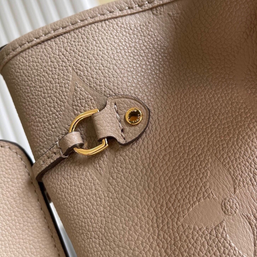 The essential Neverfull MM tote now comes in embossed Monogram Empreinte leather. Its generous dimensions make this bag ideal for everyday use while the long shoulder handles and supple leather mean it’s comfortable to carry. With the side laces cinched, this roomy carryall becomes a stylish city bag. It can be worn over the shoulder or on the elbow.