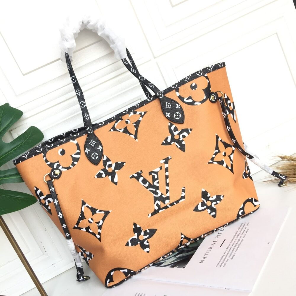 - Louis Vuitton’s signature Neverfull gets a wild new twist with a giant animal print Monogram in a reversible ivory and havana beige Coated Canvas