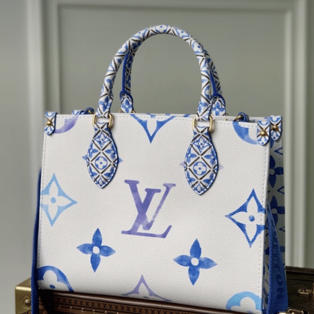 Louis Vuitton Onthego PM Color-Coated Crossbody Bag is made from high-quality canvas, the bag form has extremely meticulous and sturdy seams. The modern color-coordinated bag brings a fresh look. The spacious interior compartment can hold many essential items when going out. The bag has a convenient strap, you can wear it on your shoulder or crossbody depending on your preference.