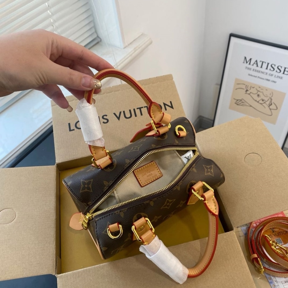 Louis Vuitton LV Nano Speedy Dating is made of lightweight, durable canvas material, easy to clean, spacious bag form with sturdy handle for comfortable use. This bag will be an accessory that creates an impressive highlight for your outfit. The highlight is the brand’s signature LV motif that makes the overall bag harmonious and eye-catching.
