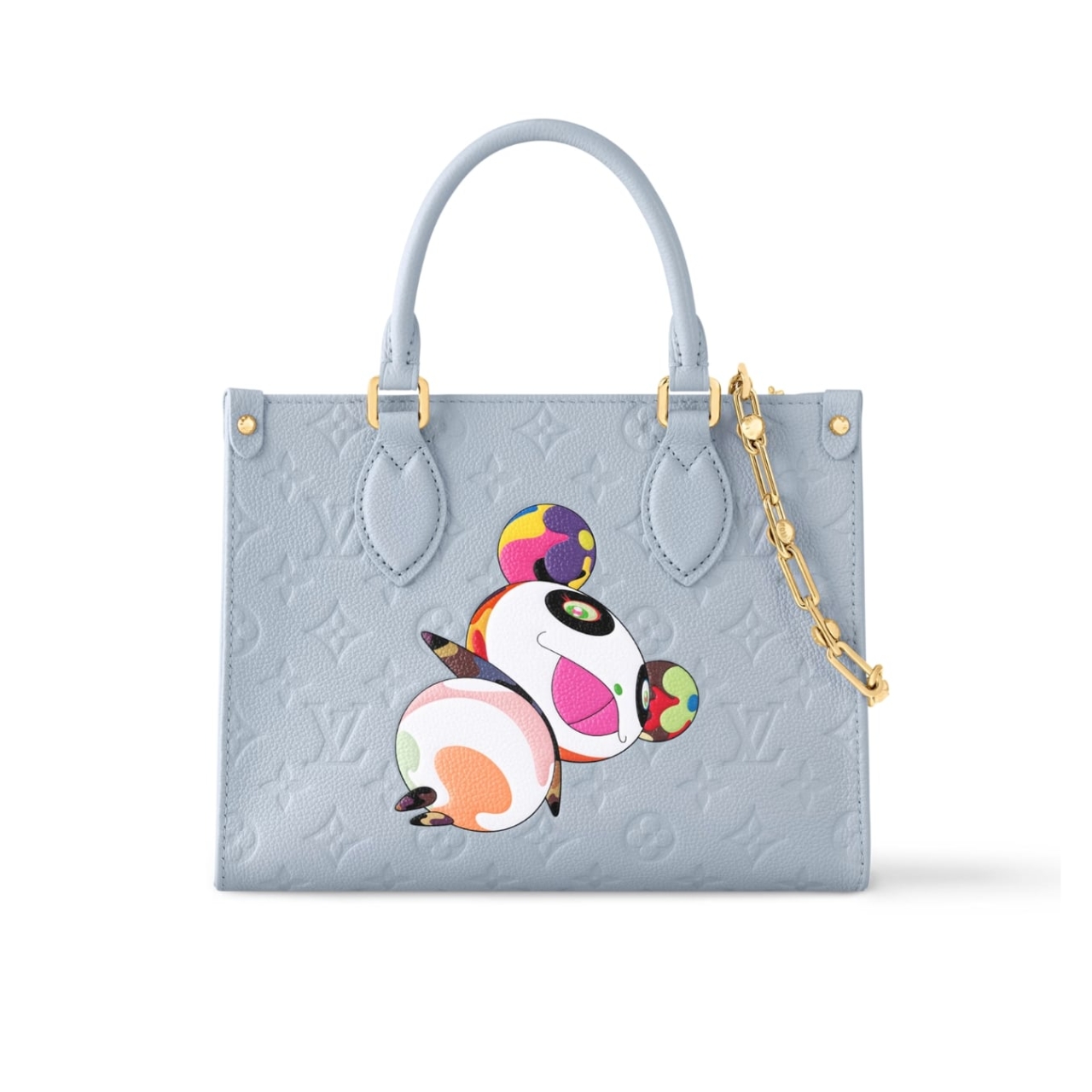 This bijou edition of the classic OnTheGo handbag is part of the playful re-edition of the Louis Vuitton x Murakami collection. It projects timeless Louis Vuitton codes in Monogram canvas trimmed with leather accents, while the front and back are uplifted with the artist’s signature Panda character printed in vibrant hues. A removable, adjustable strap offers versatile carry options, while an interior flat zipper pocket secures personal items.
