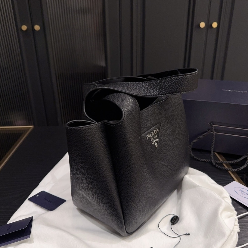 Prada Small Leather Tote Bag Black 24Cm 1BG335 2DKV F0632 V ONM