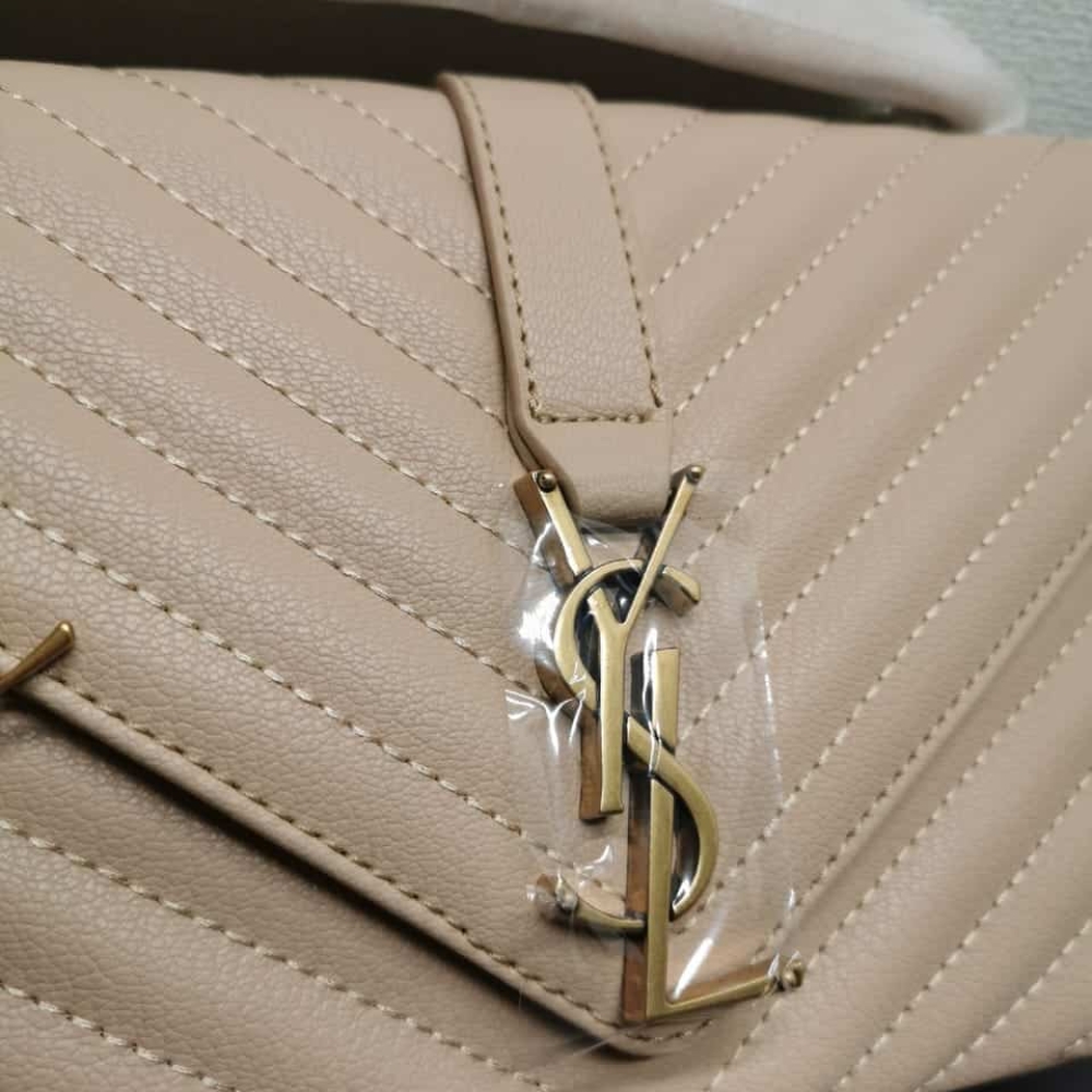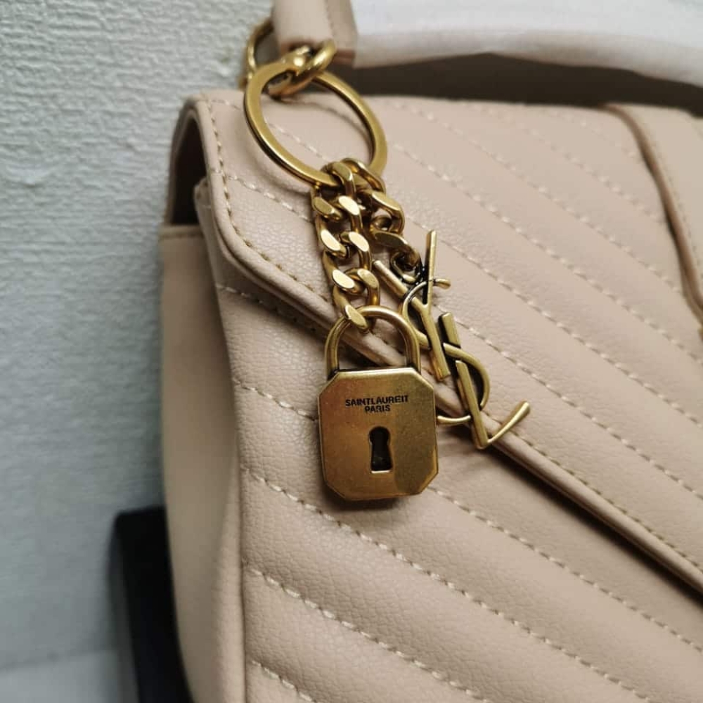Saint Laurent College Large Chain Bag Beige 25Cm